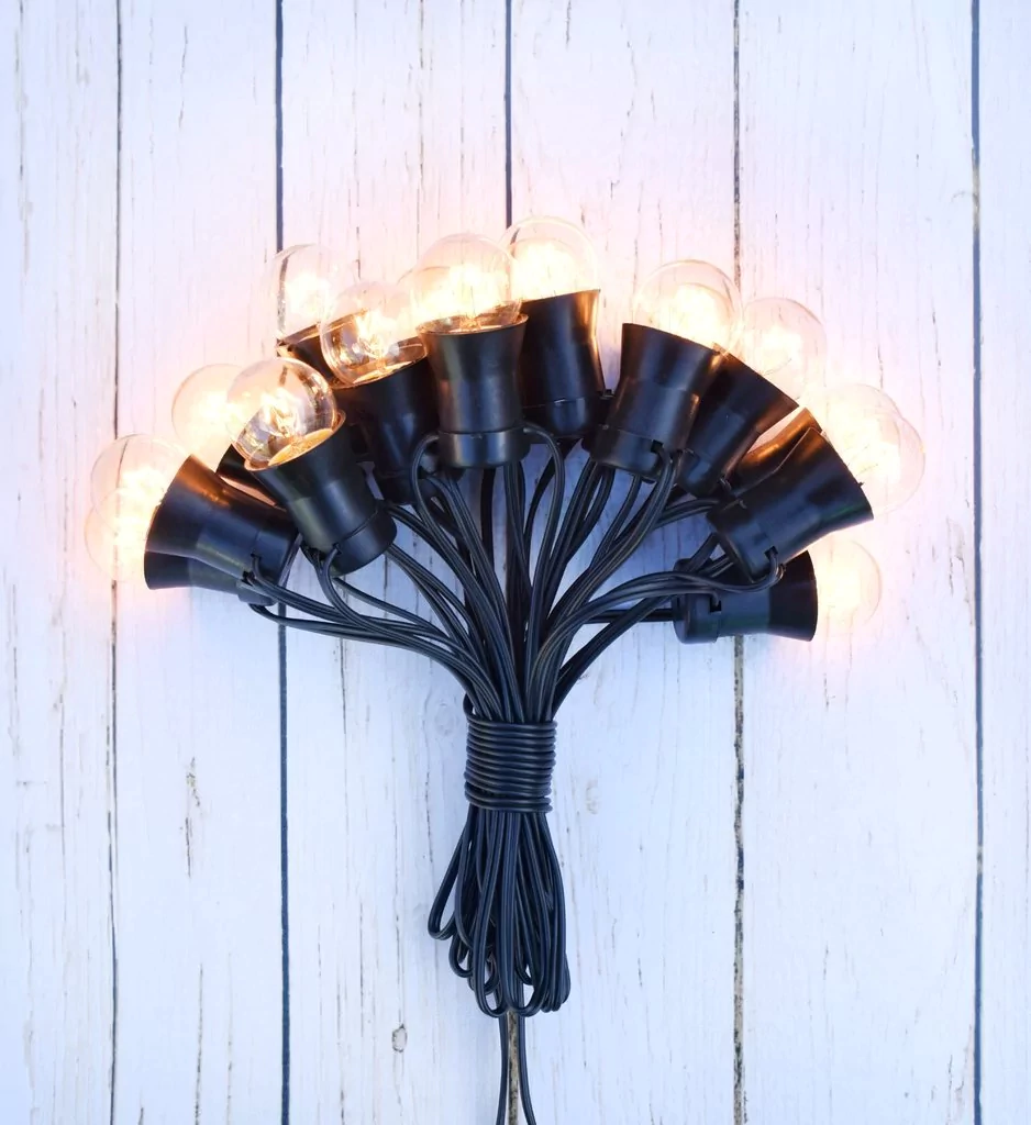 GUIRNALDA DE LUCES INCANDESCENTES TRANSPARENTES PARA EXTERIOR / INTERIOR DE 20 METROS DE LARGO TOTAL (con 18 lámparas)