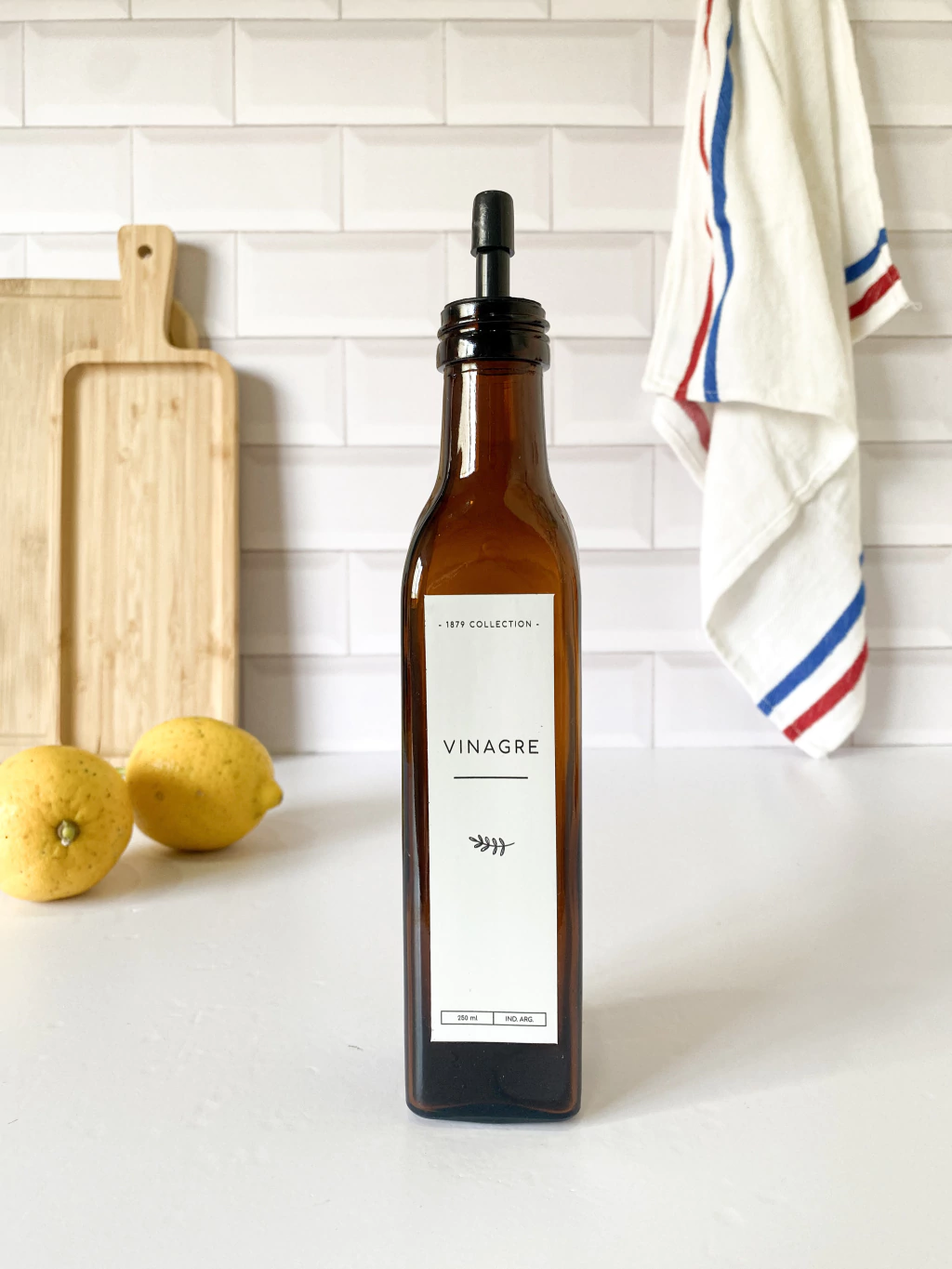 Fabricadas en vidrio extra resistente, etiquetas 100% lavables y picos vertedores con tapa que facilitan la dosificación.