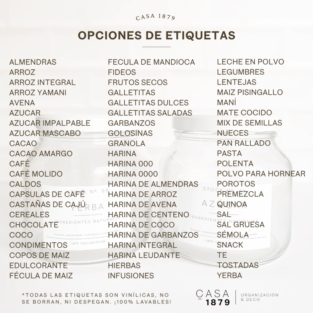 Todas las etiquetas son vinílicas, es decir, pueden estar expuestas a humedad o agua. 100 % LAVABLES!