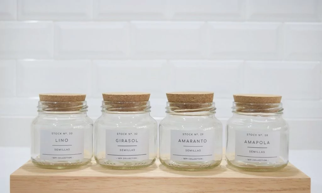SET DE 4 ESPECIEROS 250cc CON TAPA DE CORCHO + ETIQUETA A ELECCIÓN (blanca o negra)